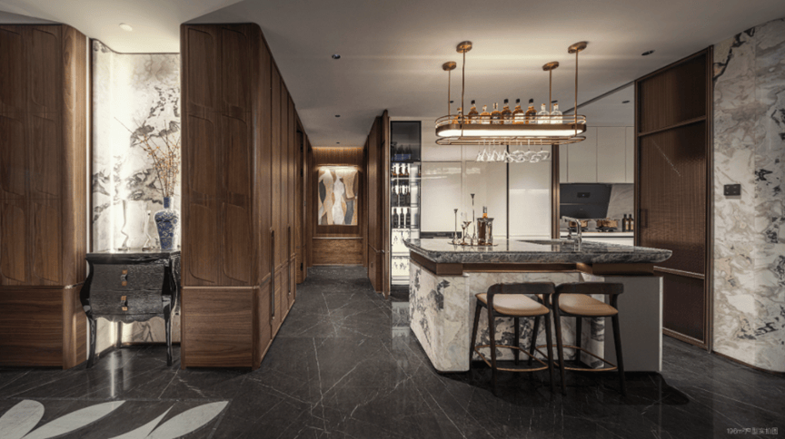 元玺主推建面约145-195㎡环幕高定大平层,通过270°环幕视野、宽厅设计等营造出现代奢居的空间感。在材质与细节上,选用天然奢石、提供国际奢装套系选择,并以弧线美学贯穿设计,从整体到局部营造出具有艺术感的居住体验。