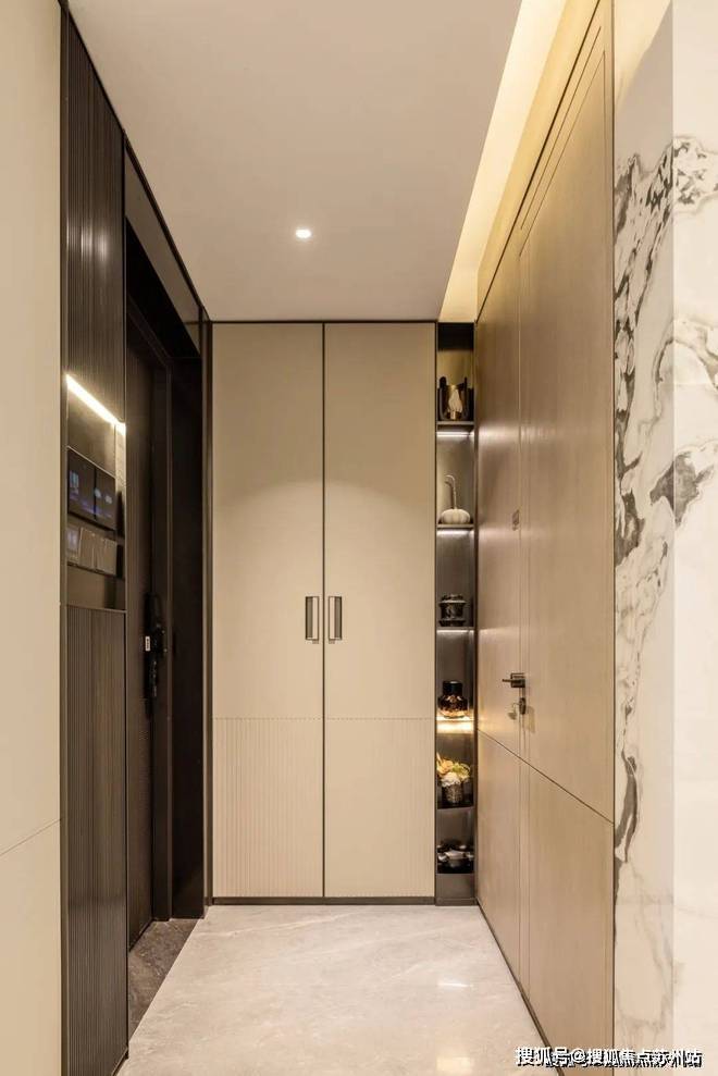 张江金茂府售楼处营销中心:张江金茂府售楼处电话/地址☎:(开发商热线卫为例,进入样板间,首先映入眼帘的是设计感满满的入户玄关,轻卡门手感厚重,搭配飞利浦智能锁高端系列产品,品味与安全感相得益彰。门后的定制柜巧妙设置了玄关造景金属壁龛柜及女王高靴放置区,实用且大气美观,让归家的第一步就充满温馨与尊贵。