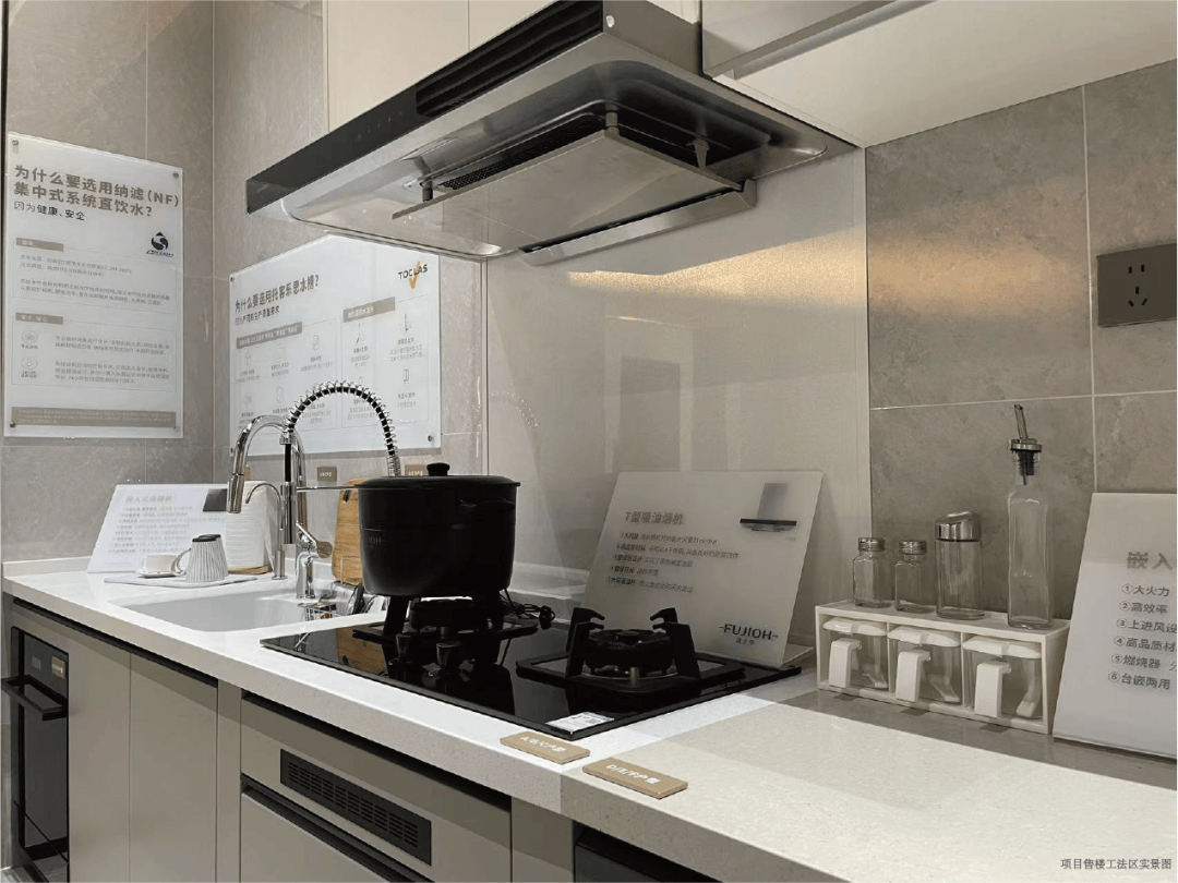 厨房系统:人造石大单槽无缝拼接,托客乐思抽拉龙头,富士帝烟灶、洗碗机、蒸烤一体机(部分户型),让烹饪成为享受。