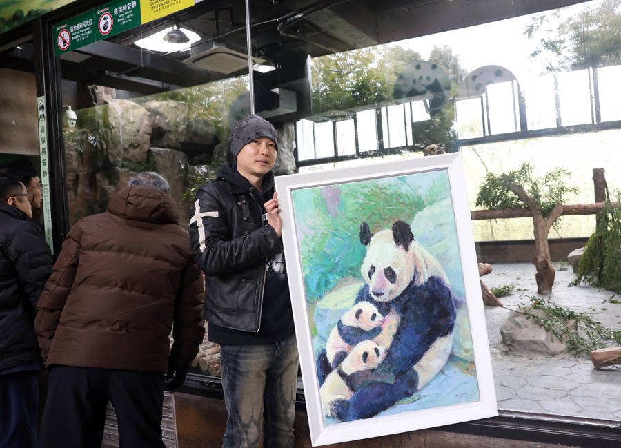 昨天上午,记者提前进入大熊猫母幼展区探访,大熊猫妈妈“芊金”正悠闲啃食竹子,姐姐“芊然”活泼好动,在栖架上灵活攀爬,显得格外调皮,弟弟“芊逸”在一旁安静酣睡,憨态可掬,引得在场游客纷纷拍照记录。